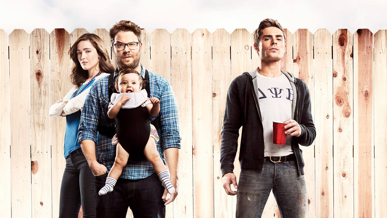 ... "Bad Neighbors". Dein Feind und Nachbar: durchgeknallte Hitkomödie mit deftigen Gags und zu bösen Späßen aufgelegten Stars. - Mac und Kelly Radner (Seth Rogen, Rose Byrne) sind als frischgebackene Eltern in ein idyllisches Vorort-Häuschen gezogen. Doch als Partykanone Teddy (Zac Efron) mit seiner lauten Studentenverbindung ins Nachbarhaus zieht, ist es vorbei mit Ruhe und Frieden: Bald entbrennt ein verrückter Kleinkrieg zwischen den beiden Parteien.