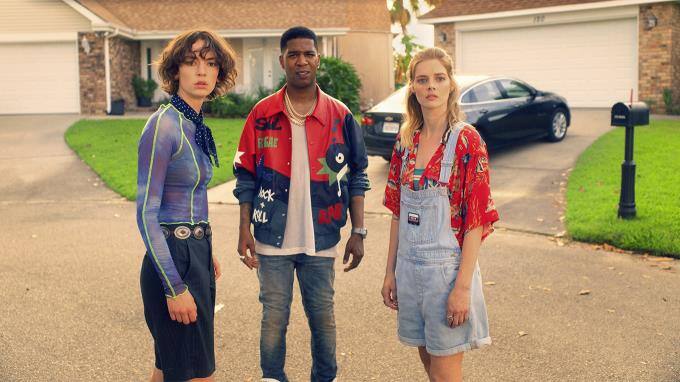 Billie (Brigette Lundy-Paine, links) und Thea (Samara Weaving) wollen ihren Vätern helfen und holen unter anderm Musiker Kid Cudi ins Boot.
