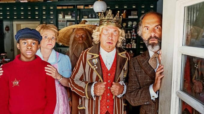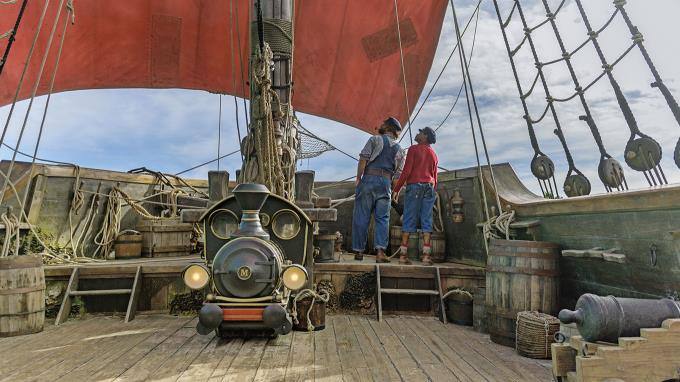 Nachdem Jim Knopf (Solomon Gordon) und Lokomotivführer Lukas (Henning Baum) die böse Frau Mahlzahn besiegt haben, verbringen sie eine gemtüliche Zeit mit Prinzessin Li Si (Leighanne Esperanzate) auf Lummerland.