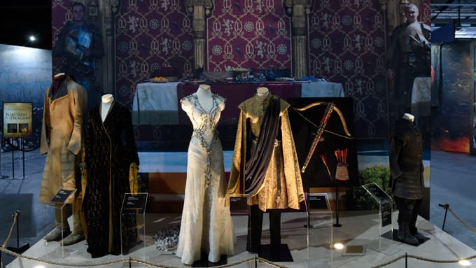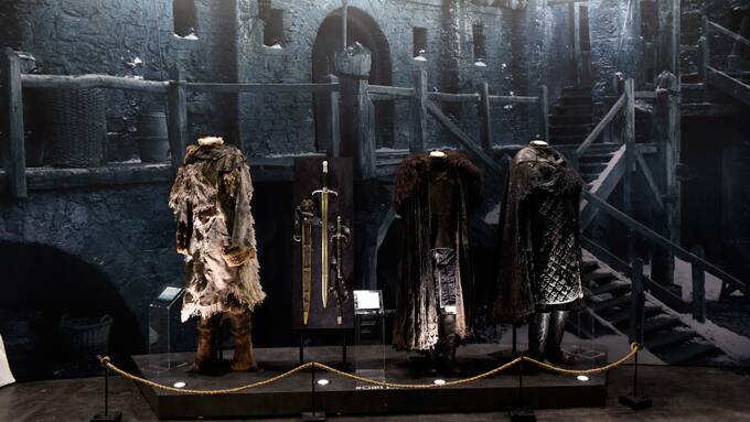 Fans dürfen sich zudem auf eine großartige Kostümkollektion freuen, darunter Rüstungen, Kleider, Mäntel sowie Schmuck. Ausgestellt werden zudem am Drehort hergestellte Modelle wie zum Beispiel eine lebensgroße Nachbildung eines Weißen Wanderers, ein Drachenmodell, eine Waffensammlung, die aus Schwertern, Speeren, Peitschen und Dolchen besteht, sowie die Banner der Häuser und vieles mehr.
