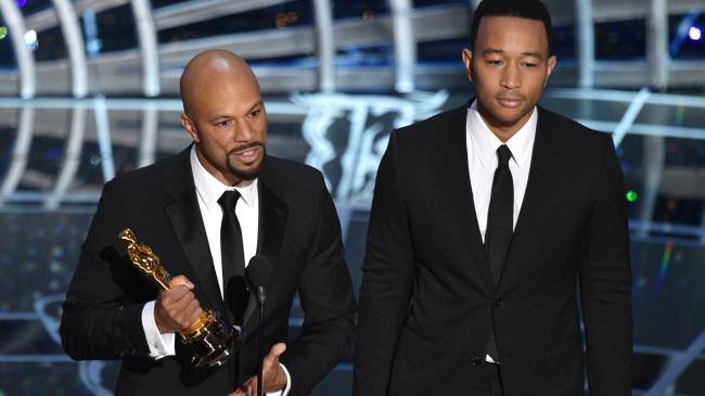 Octavia Spencer, eigentlich von Neil Patrick Harris dazu abgestempelt, den Gewinnerkoffer zu bewachen, tritt auf die Bühne, um John Legend und Common mit "Glory" aus dem Film "Selma" anzukündigen. Hauptdarsteller David Oyelowo ist zu Tränen gerührt. Standing Ovations.