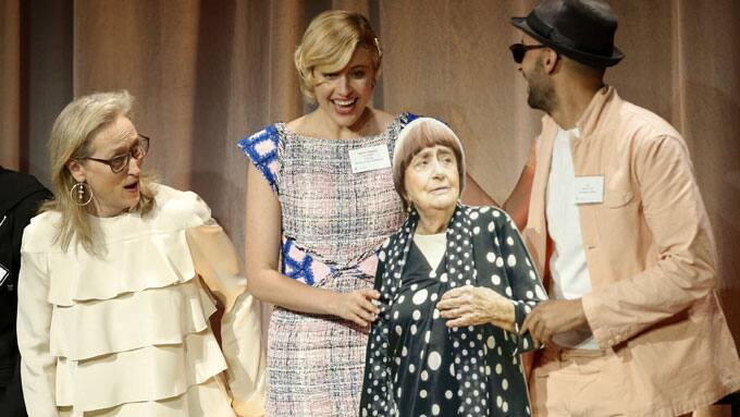 Auch bei der Aufstellung für das Klassenfoto sorgte Vardas Abbild bei Meryl Streep und Greta Gerwig für jede Menge Spaß.