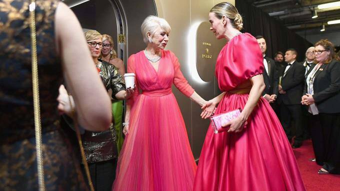 Pretty in pink! Helen Mirren scheint das Kleid von Schauspielerin Sarah Paulson sehr gut zu gefallen.