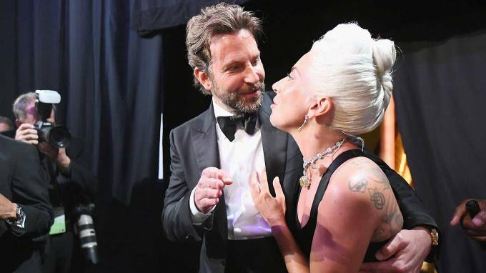 ... sowie nach dem Auftritt backstage: Lady Gaga und Bradley Cooper.