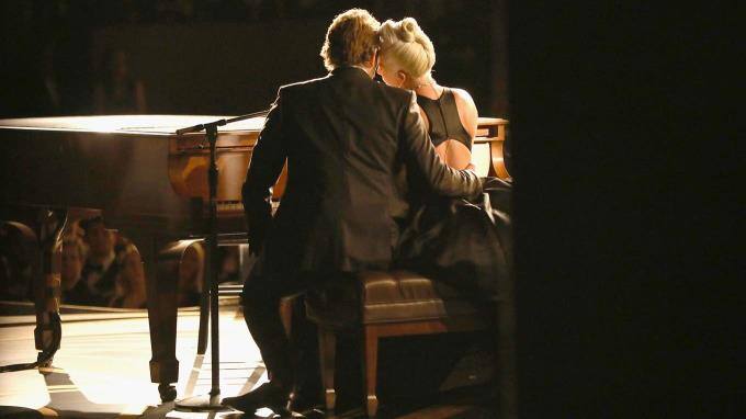 Innig auf der Bühne während ihrer Performance von "Shallow" ...