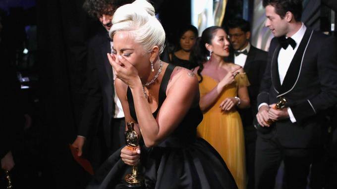 Auf der Bühne konnte sie sich noch zusammenreißen, doch backstage brachen alle Dämme. Lady Gaga weint vor Freude über ihren Oscar®, den sie in der Kategorie "Bester Filmsong" für "Shallow" aus dem Film "A Star is Born" erhielt.