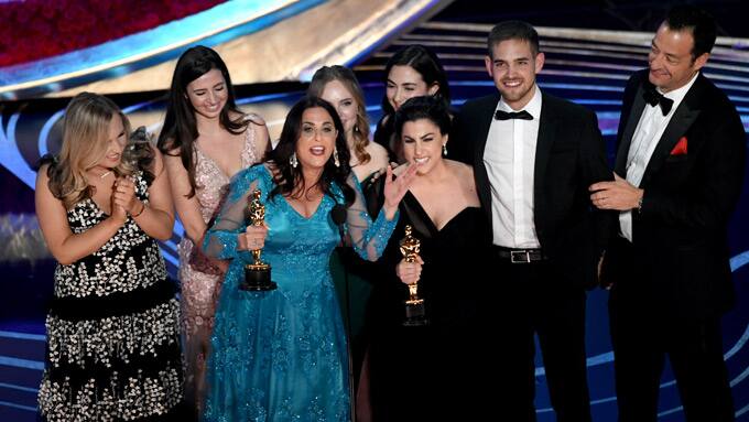 "Ich kann nicht glauben, dass eine Dokumentation über Menstruation gewinnt" - "Der Beste Dokumentar-Kurzfilm": "Period. End of Sentence": Melissa Berton und Rayka Zehtabchi.