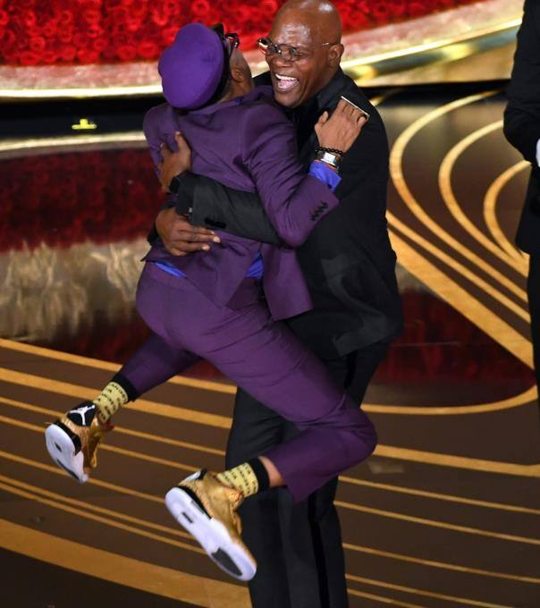 Laudator Samuel L. Jackson freute sich gemeinsam mit Spike Lee über den Gewinn des "Besten adaptierten Drehbuchs" für "BlacKkKlansman".