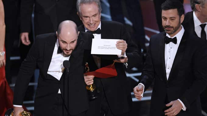 "La La Land"-Produzent Jordan Horowitz hielt den Oscar bereits in der Hand, als er den Irrtum bemerkte und "Moonlight" als den richtigen Gewinner auf die Bühne holte. Darauf folgten Stille, Schock und Ungläubigkeit, während Oscar-Moderator Jimmy Kimmel versuchte, die Stimmung wieder aufzulockern.