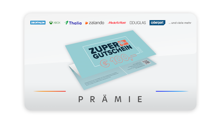 Für die € 100 Zupergutschein gilt: Der Versand der Gutscheinprämie erfolgt per E-Mail durch die Firma Prämie Direkt GmbH. Du erhältst einen Gutschein-PDF inkl. Gutscheincode an deine E-Mail-Adresse. Der Code kann im Zupergutschein-Einlösportal gegen einen Gutschein eingetauscht werden. Der Sky Kunde erklärt sich damit einverstanden, dass die Sky Österreich Fernsehen GmbH zur Abwicklung (Versand des Gutscheins, Reklamation, etc.) ausschließlich Kontaktdaten (Anrede, Vor- und Nachname, E-Mail-Adresse, postalische Anschrift) an die Prämie Direkt GmbH übermittelt. Barauszahlung sowie Umtausch ausgeschlossen.