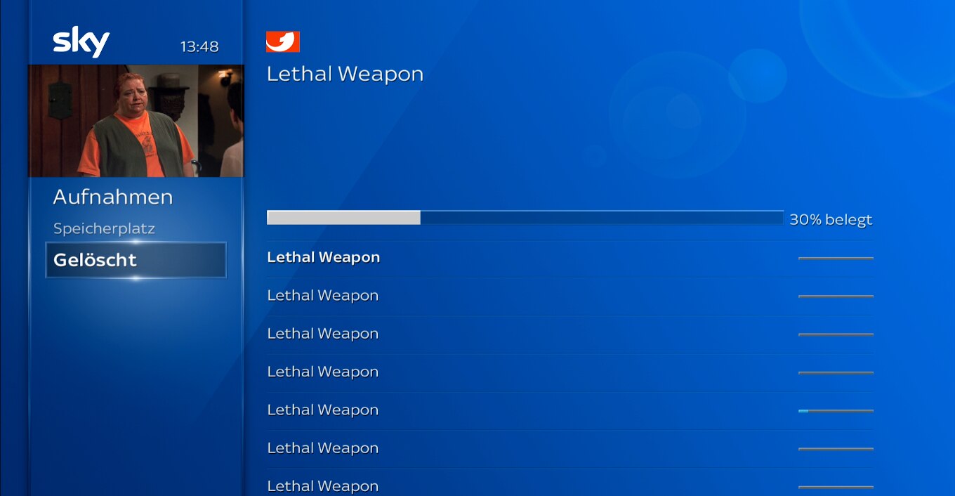 Wenn deine Festplatte voll ist und du eine neue Aufnahme programmierst, wird automatisch die älteste, bestehende Aufnahme auf der Festplatte gelöscht.