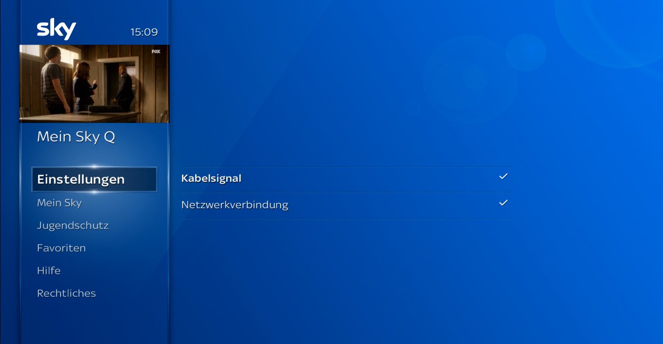 Prüfe hier, ob bei Verbindung zum Internetrouter und Internetverbindung jeweils der Haken gesetzt ist. Falls statt eines Haken ein X hinter einem Punkt oder beiden Punkten ist, musst du deinen Sky Q Receiver mit dem Internet verbinden .