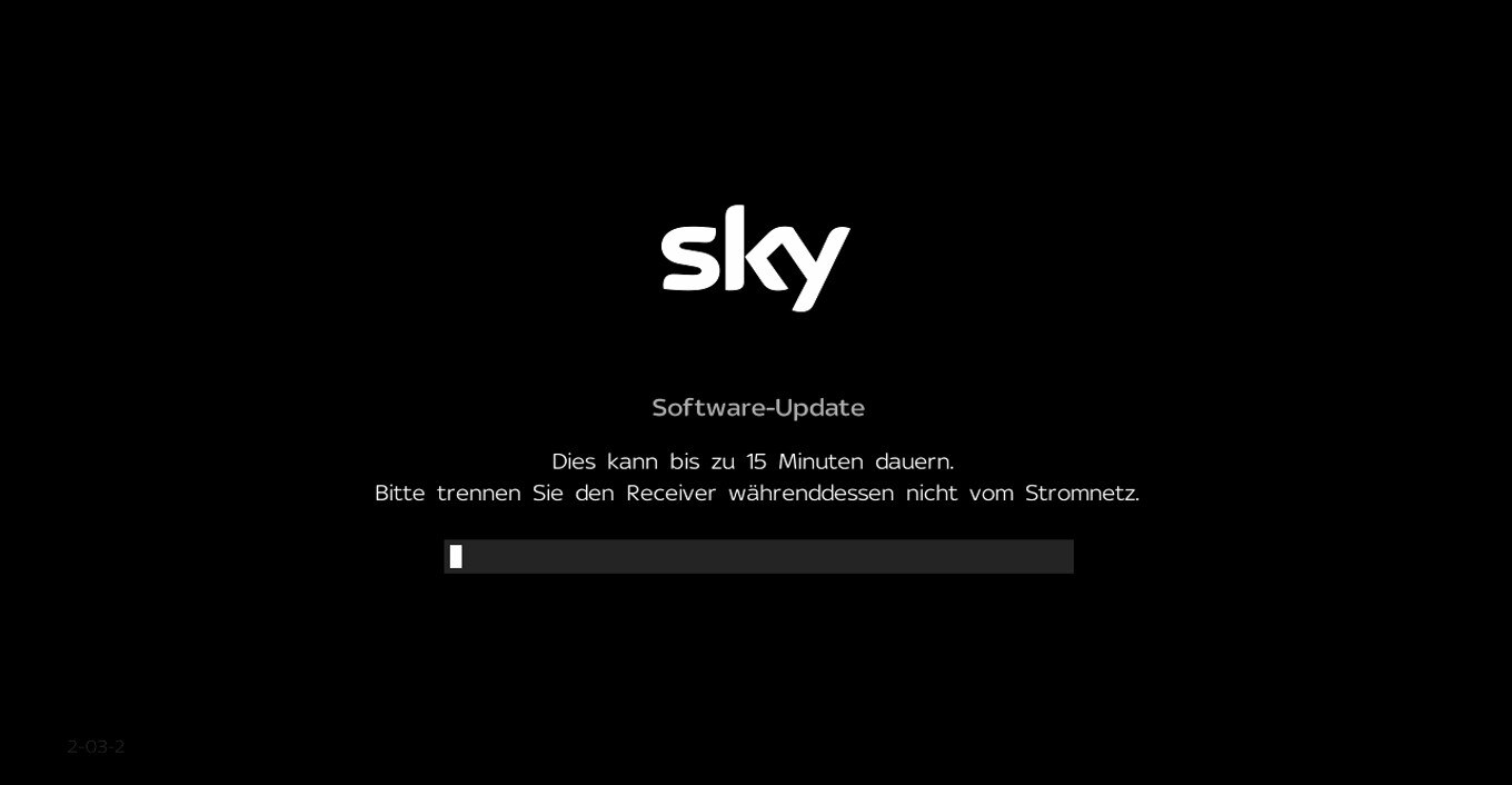 Bildschirm zur Bestätigung des Software-Updates. Bitte trennen Sie den Receiver während dieser Zeit nicht vom Stromnetz.