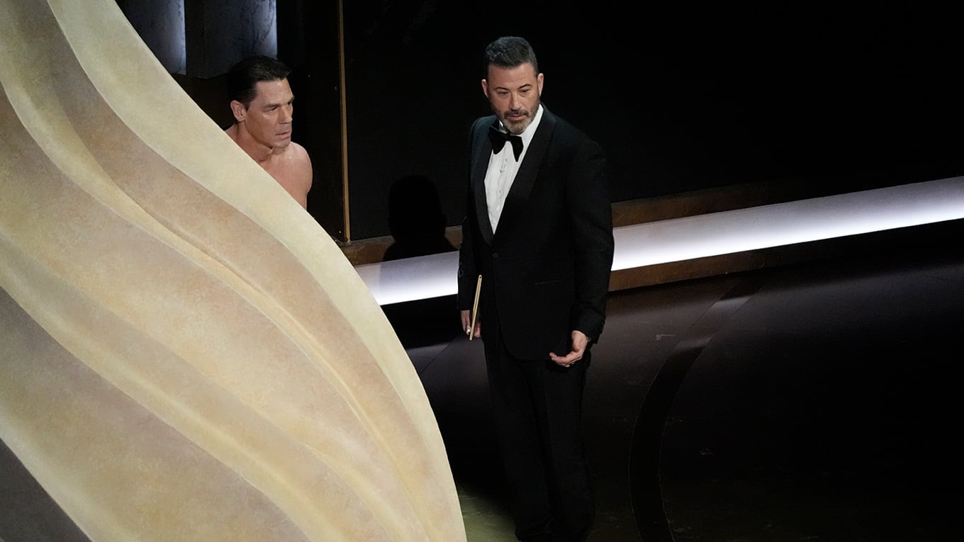 In Erinnerung an den Flitzer, der 1974 über die Bühne der Academy Awards rannte, stellte sich Jimmy Kimmel die Frage, ob so etwas jetzt wieder passieren könnte. Doch Schauspieler John Cena konnte erst mit viel Überzeugungskraft seitens Kimmel und mithilfe des Umschlags für das "Beste Kostüm" nackt auf die Bühne treten, wo er nochmal betonte: "Kostüme sind so wichtig". Kimmel reichte ihm schließlich ein Stück des Vorhangs, damit Cena auch den Umschlag öffnen konnte.