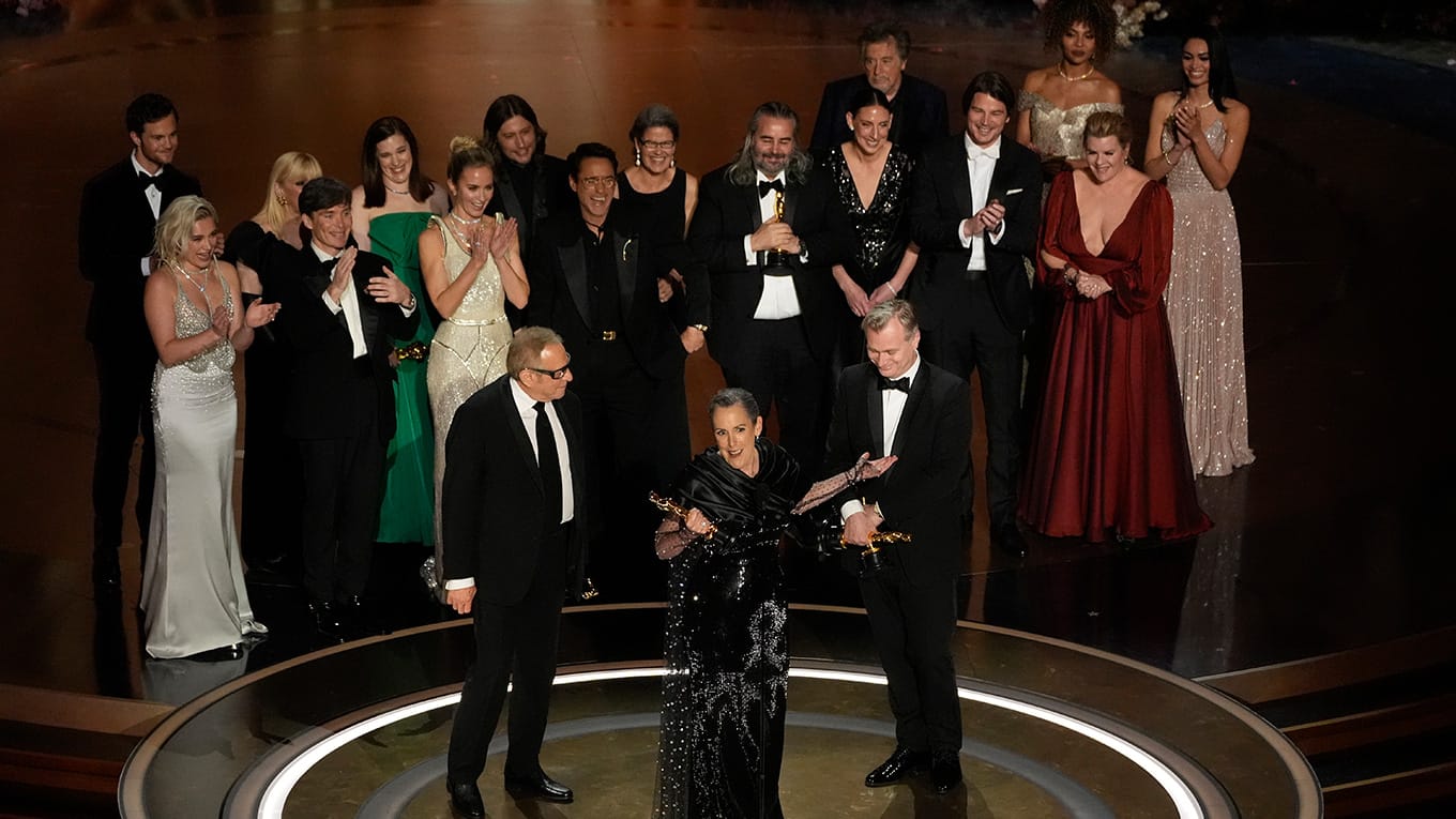 Der "Beste Film" des Abends wurde von Al Pacino verkündet, wobei Kimmel im Vorfeld noch darum bat, dass man Emma Stones Umschlag zerstören sollte. Schließlich sorgte 2017 genau diese Konstellation – Stone als beste Hauptdarstellerin – dazu, dass Warren Beatty und Faye Dunaway den falschen Gewinnerfilm verkündeten, da sie Emma Stones Umschlag erhielten. Doch dieses Jahr lief alles glatt und "Oppenheimer" heimste seine siebte Trophäe ein.