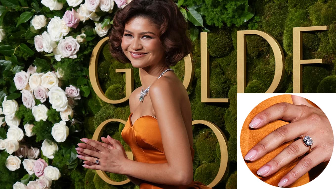 • Zendaya zeigt sich 2025 bei der Verleihung der 82. Golden Globes mit einem Diamantring am linken Ringfinger.
