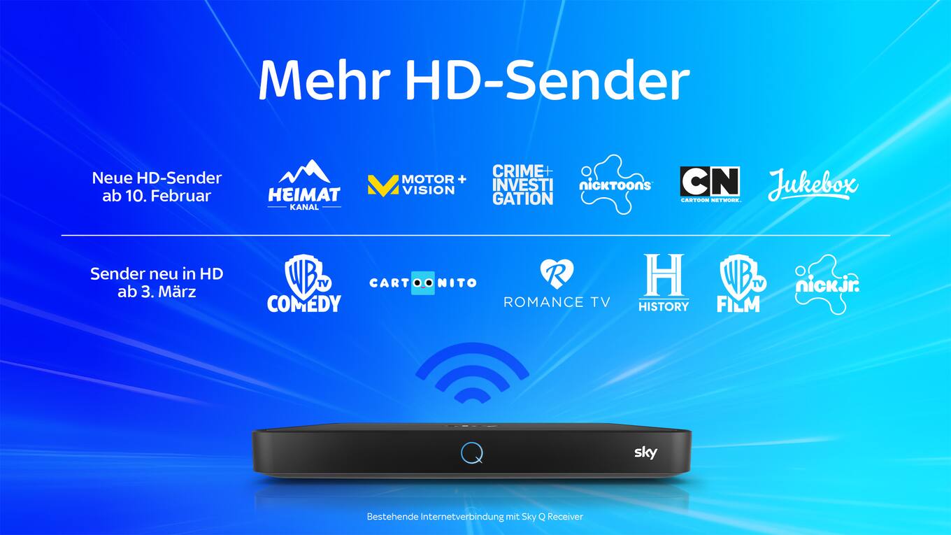 Freue dich auf ein noch besseres TV-Erlebnis! Zukünftig überträgt Sky im VodafoneKabelnetz die meisten Sender über das Internet. Dadurch empfängst du mehr Sender in besserer Bildqualität – ab dem 9. Februar zusätzliche HD-Sender und ab dem 2. März bisherige SD-Sender in HD-Qualität. Damit du die neuen HD-Sender und viele weitere Vorteile deines Sky Abos nutzen kannst, stelle bitte sicher, dass dein Sky Q Receiver dauerhaft mit dem Internet verbunden ist.
