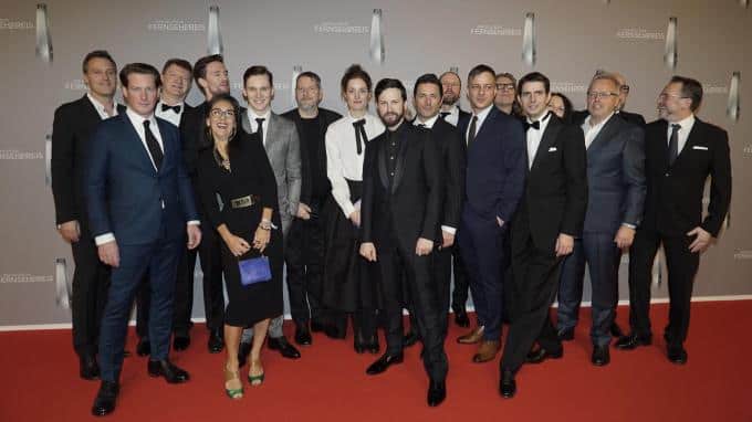 Der zweite Award für die Sky Serie von Regisseur Andreas Prochaska ging an Kameramann David Luther, der von der Ehrung überwältigt war. Mit Tränen in den Augen nahm er den Fernsehpreis von Barbara Schöneberger entgegen, die ihm danach erst einmal die hochgerutschten Hosenbeine richtete, denn: "Im Internet bleibt das Bild doch für immer."