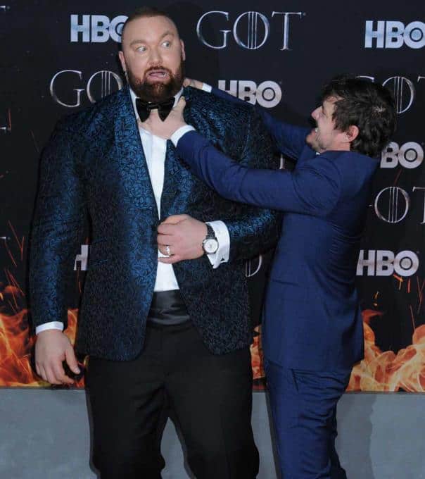 Des Weiteren gab es ein Wiedersehen mit Pedro Pascal alias Prinz Oberyn Martell und Hafþór Júlíus Björnsson alias Gregor Clegane aka "Der Berg". In Staffel 4 Folge 8 "Der Berg und die Viiper" kam es zum Duell zwischen den beiden Seriencharakteren, bei dem Oberyn einen qualvollen Tod starb. Bei der GOT-Premiere nutzte Pascal daher die Chance und rächte sich an Björnsson mit einem Würgegriff – selbstverständlich nur zum Spaß. Der Schauspieler hätte gegen den 2,06 Meter großen und 180 Kilogramm schweren "World's Strongest Man" von 2018 im realen Leben sowieso keine Chance, eine körperliche Auseinandersetzung zu gewinnen.