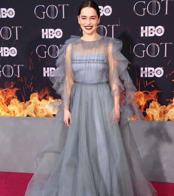 Zum letzten Mal trafen sich die Schauspieler von "Game of Thrones" auf dem roten Teppich, um die Premiere zur finalen Staffel der Erfolgsserie zu feiern. Und sie kamen alle - egal, ob sie in der Serie schon das Zeitliche gesegnet haben: Emilia Clarke erschien im graublauen Tüllkleid.