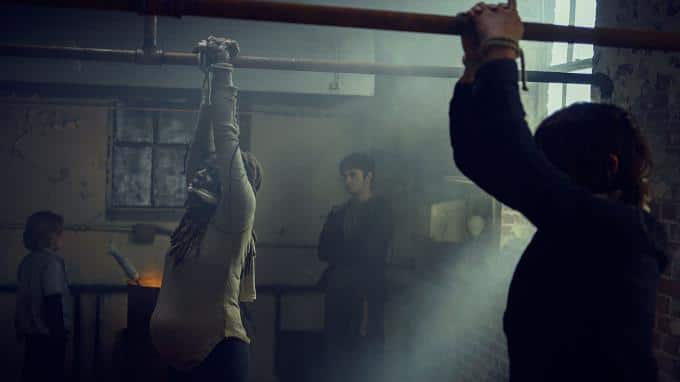 Jocelyn erzieht ihre kleinen Kämpfer nach dem Prinzip: Nur die Starken überleben und herrschen. Michonne und Daryl werden mit einem Kreuz gebrandmarkt.
