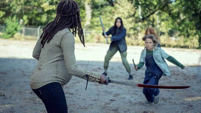 Um die Menschen zu beschützen, die sie liebt, muss sie eine grausame Entscheidung treffen. Schließlich tötet sie die kindlichen Krieger und kann Judith und die anderen befreien. Doch das Geschehene macht Michonne zu einem anderen Menschen und belastet sie auch noch Jahre später.
