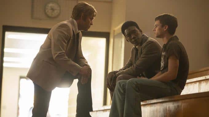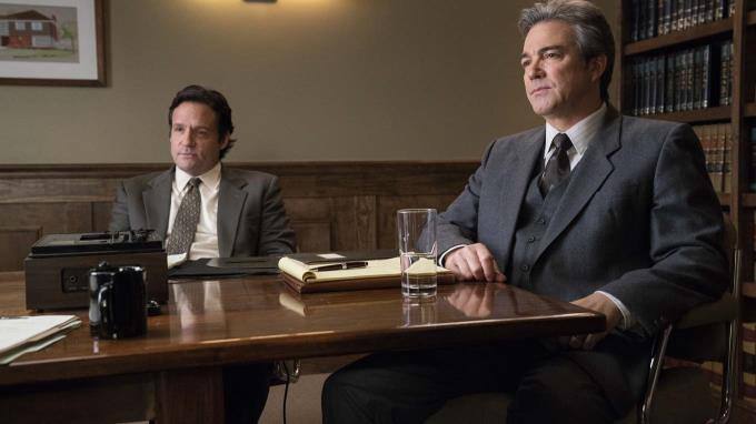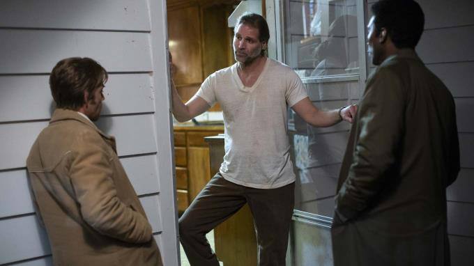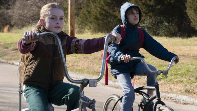 Finn Bennett als Peter Prior (links) und John Hawkes als Hank Prior.