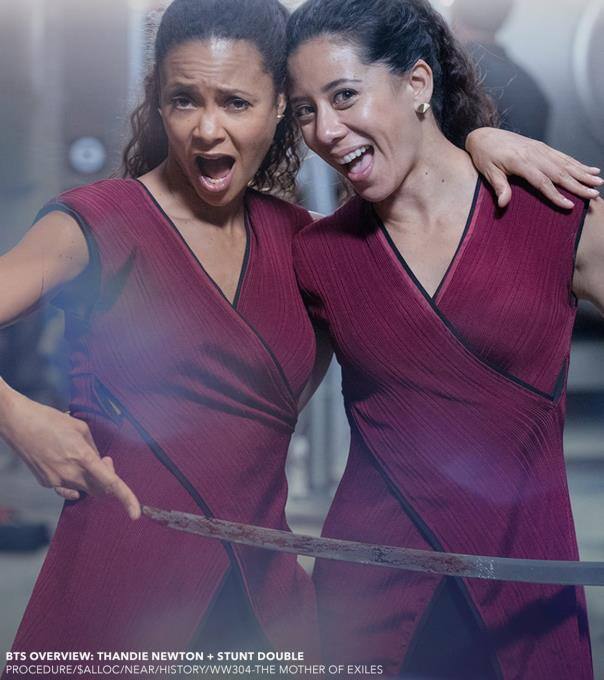 Thandie Newton als Maeve mit ihrem Stunt-Double.