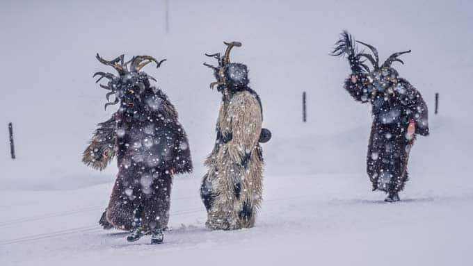 Die Kostümierung unterscheidet sich von Region zu Region. Typisch sind aber immer die furchterregenden geschnitzten Masken. Die Tradition ist mehrere Jahrhunderte alt. In einigen Orten im Alpenraum finden im Winter Umzüge von Krampussen statt, so genannte Krampusläufe.