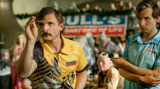 Hat "Die Wespe" es noch drauf? Eddie (Florian Lukas, l.) und Kevin (Leonard Scheicher) konkurrieren auf einem Dart-Turnier.