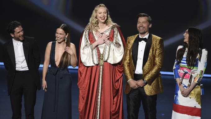 Grund zur Freude beim Cast (v.l.n.r.: Kit Harrington, Emilia Clarke, Gwendoline Christie, Nikolaj Walder-Costau und Carice van Houten) von "Game of Thrones". Auch die letzte Staffel der Erfolgsserie konnte wieder abräumen - insgesamt gab es 12 Emmy® Awards für die Fantasy-Serie.