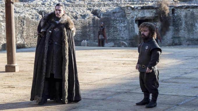 In Winterfell findet unterdessen ein bedrohlicher Geschwisterstreit statt: Die Stimmung zwischen Arya (Maisie Williams) und ihrer Schwester Sansa Stark (Sophie Turner) ist angespannt. In der Vorschau wandert Sansa grübelnd auf der Burgmauer und schaut mit sorgenvollem Blick in die Ferne. Wird es etwa zum Kampf zwischen den beiden Schwestern kommen?