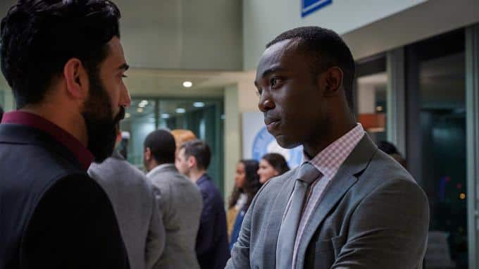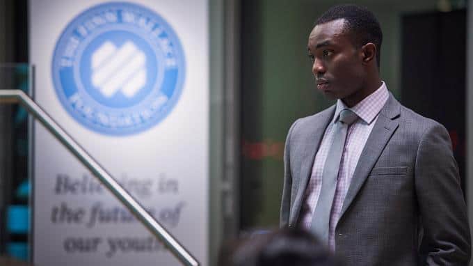 Währenddessen hält Alex Dumani (Paapa Essiedu) in der Finn-Wallace-Stiftung eine Rede vor den geladenen Gästen.