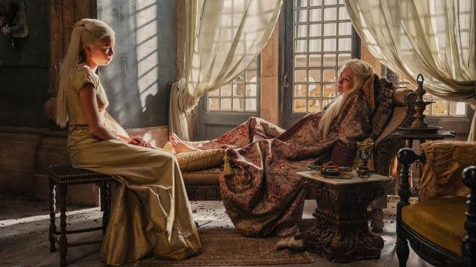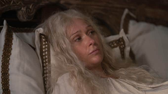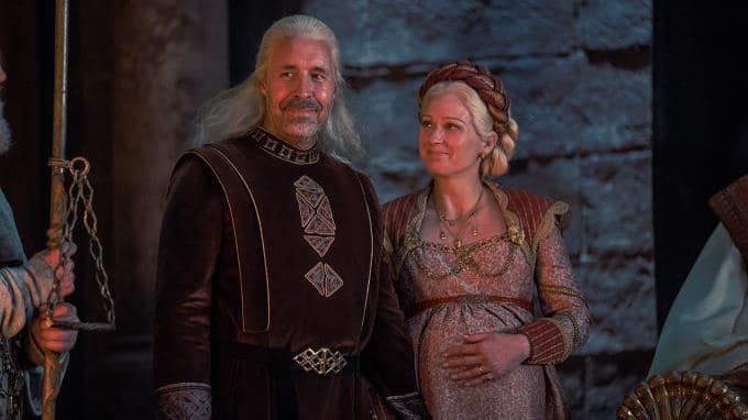 Zu ihrer Mutter hat Rhaenyra ein enges Verhältnis. Aemma Targaryen (Sian Brooke) ist hochschwanger und die Hoffnung, dass das Baby ein Junge und somit der langersehnte Thronfolger wird, ist groß.