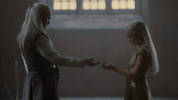 Die Handlung der ersten Folge setzt im neunten Jahr der Herrschaft von Viserys ein. Bei den Ratssitzungen des Königs arbeitet Rhaenyra als Mundschenk.