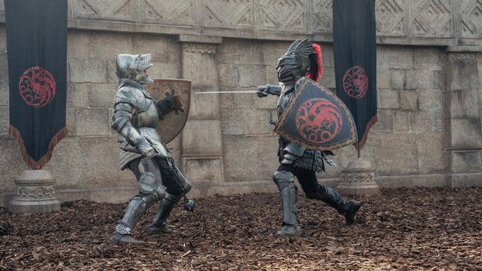 Der Tag des großen Ritterturniers ist gekommen. König Viserys eröffnet die Kämpfe und verkündet, dass bei seiner Frau die Wehen eingesetzt haben. Ein Ritter, der sich bei dem Turnier hervortut, ist Kriston Kraut (Fabien Frankel). Auch Daemon kann sich auf dem Pferd gegen seine Gegner durchsetzen. Als ersten Kontrahenten wählt er den Sohn von Otto Hohenturm. Daemon geht als Sieger hervor und wählt als nächsten Gegner Kriston Kraut. Gegen ihn zieht er allerdings den Kürzeren.
