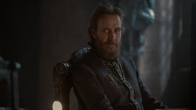 Zum Kleinen Rat von König Viserys gehören unter anderem Otto Hohenturm (Rhys Ifans, Bild) als Hand des Königs sowie Lord Lyman Bienengraben als Meister der Münze und ...