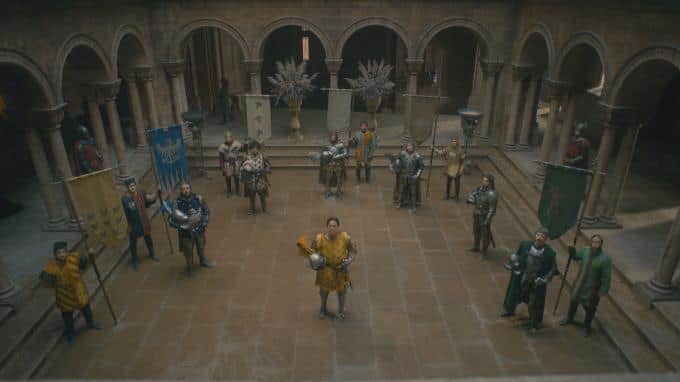 Rhaenyra entscheidet sich allerdings für den bisher noch unbedeutenden Ser Kriston Kraut (Fabien Frankel), weil dieser als einziger der ausgewählten Männer über wirkliche Kampferfahrung verfügt.