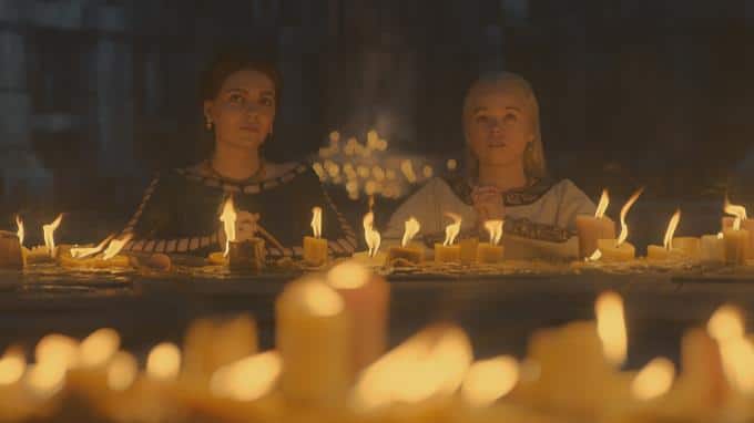 In der Großen Septe trifft sich Alicent mit ihrer Freundin. Rhaenyra ist besorgt, weil sie weiß, dass der Rat ihren Vater dazu drängt, erneut zu heiraten und einen männlichen Thronfolger zu zeugen. Sie ist verunsichert, dass sie dadurch als seine Nachfolgerin abgelöst werden könnte. Alicent sagt ihr, dass ihr Vater sie liebe. Sie möchte, dass Rhaenyra mit ihr zusammen eine Kerze anzündet. Ihr helfe dies immer, um sich ihrer verstorbenen Mutter näher zu fühlen. Rhaenyra tut es ihr gleich und beginnt zu weinen. Der Verlust ihrer Mutter schmerzt sie immer noch sehr und sie wünscht sich, dass ihr Vater endlich mehr als nur seine kleine Tochter in ihr sehe.