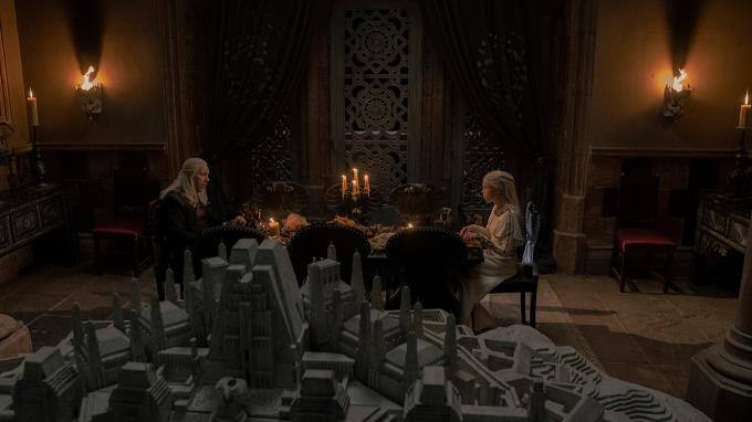 Beim Abendessen nähern sich Vater und Tochter wieder etwas an. Viserys versichert Rhaenyra, dass er ihre Mutter sehr geliebt habe und sie noch sehr vermisse.