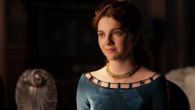 Mit ihrer freundlichen und einfühlsamen Art hat Alicent Hohenturm (Emily Carey) dem König bei seiner Trauer geholfen und sein Vertrauen gewonnen.