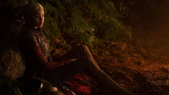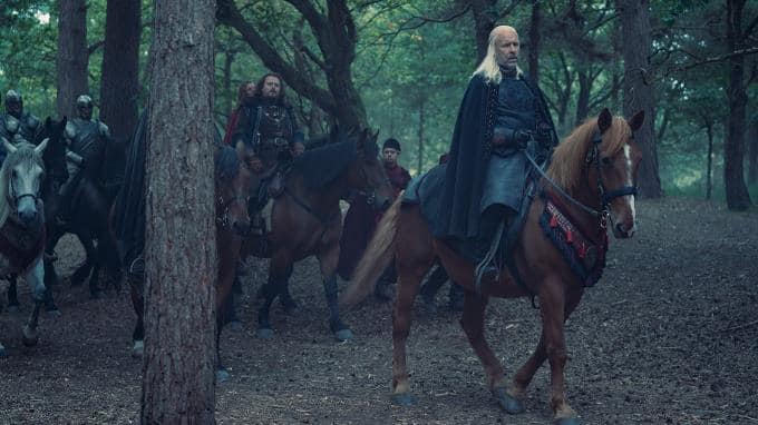 Rhaenyra ist nach dem Streit verärgert in den königlichen Wald geritten. Kriston Kraut (Fabien Frankel), der Ritter der Königsgarde, begleitet sie zu ihrem Schutz.