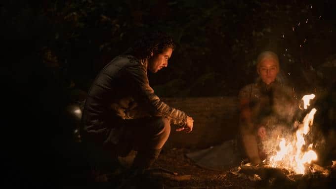 Die Prinzessin klagt Kriston während ihres Ausritts ihr Leid. Am Abend sitzen sie am Lagerfeuer zusammen, als plötzlich ein Wildschwein Rhaenyra angreift.