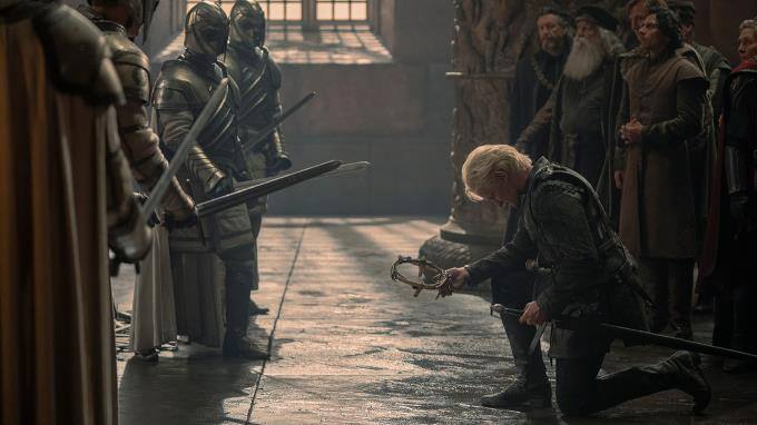 Wider aller Erwartungen zeigt sich Daemon gegenüber seinem Bruder demütigt. Er kniet vor ihm nieder und erklärt, dass es nur einen wahren König gebe, Viserys Targaryen.