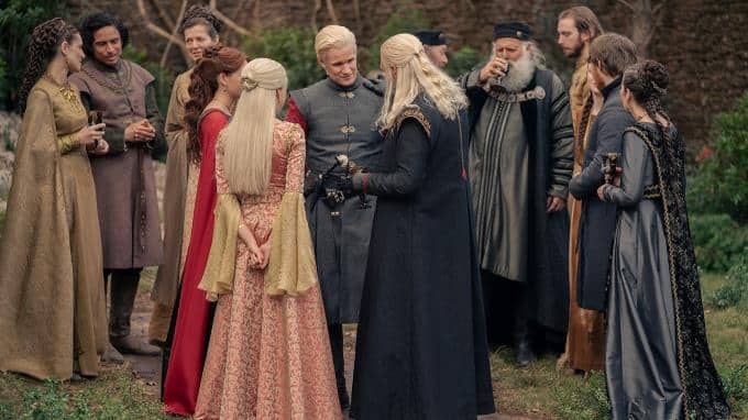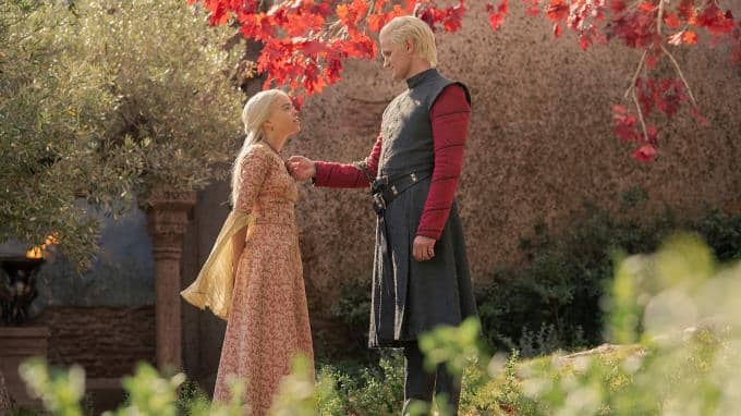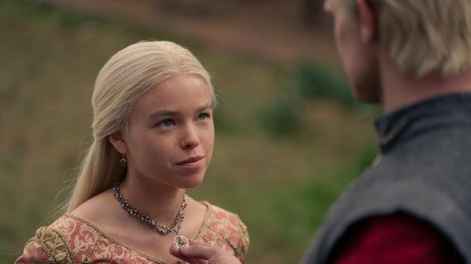 ... Rhaenyra gesteht Daemon, dass sie nicht heiraten möchte, weil sie die Ehe für ein Gefängnis halte, in dem sie gezwungen werde, Nachkommen zu produzieren. Daemon erklärt ihr, dass sie nicht in Furcht leben dürfe, da ihr sonst das Beste am Leben entgehe.