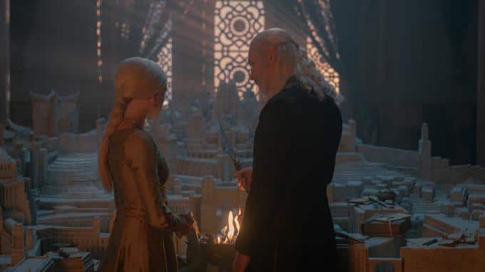 Viserys kocht vor Wut, aber er durchschaut Daemons Absichten: Er hat es nur auf seinen Thron abgesehen. Der König verbannt ihn vom Hof und will ihn nie wieder sehen.