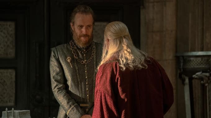 Rhaenyras nächtlicher Ausflug blieb allerdings nicht unentdeckt: Ein Spion von Otto Hohenturm (Rhys Ifans) hat die Prinzessin gesehen und berichtet der Hand des Königs davon.