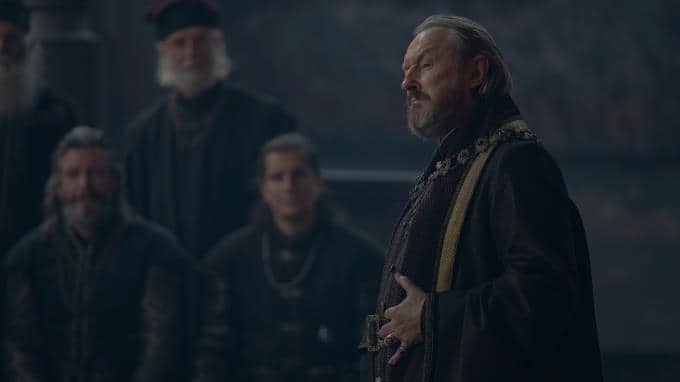 Alicent glaubt Rhaenyra und legt für sie ein gutes Wort bei Viserys ein. Sie ist der Überzeugung, dass Daemon gelogen hat, um den König zu demütigen.