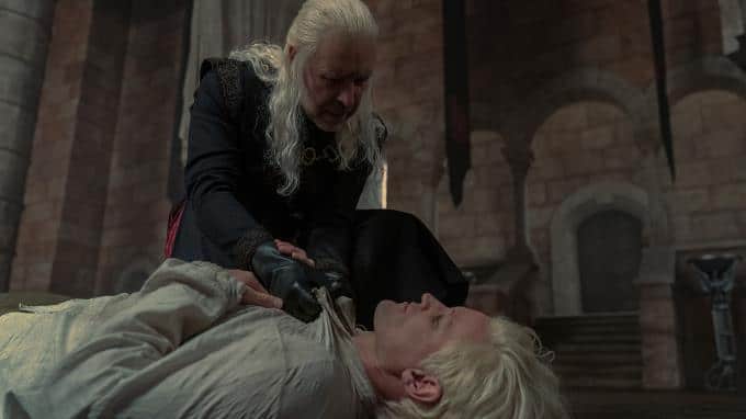 Alicent hat die Nacht in den Gemächern des Königs verbracht und die Nachricht über Rhaenyra mitangehört.