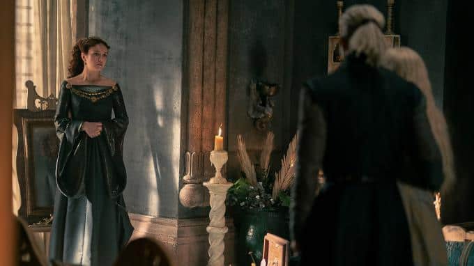Der Prinzessin wird bewusst, dass sich ihre Lage immer mehr verschlechtert. Sie schlägt daraufhin Königin Alicent eine Verlobung zwischen ihrem Sohn und Thronfolger Jacaerys sowie Alicents Tochter Helaena vor, damit sie später einmal beide gemeinsam herrschen können. Alicent empfindet dies jedoch als Hohn.